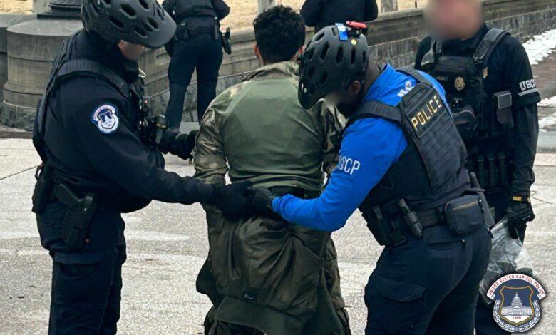 Según las autoridades, Camacho salió de una camioneta Mercedes SUV estacionada cerca del edificio y avanzó “varios cientos de metros” hacia el Capitolio antes de ser interceptado por agentes, quienes le ordenaron que soltara el arma y se rindiera sin que se registrara disparo ni heridos.