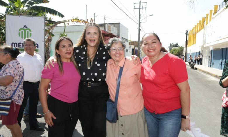 La alcaldesa encabezó la entrega de trabajos de repavimentación en la calle 74 por 71 y 75, en el Centro Histórico, como parte del plan de mejora vial en la capital.