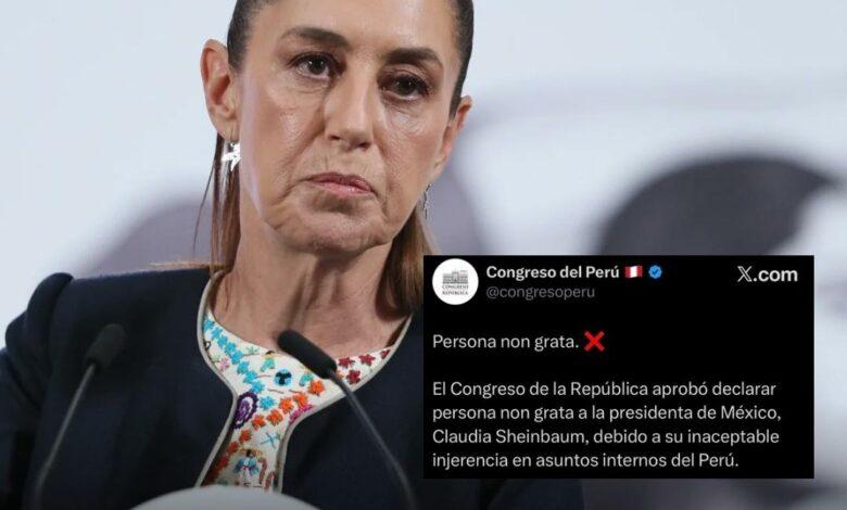 El Congreso de Perú aprobó declarar persona non grata a la presidenta de México, Claudia Sheinbaum, luego de sus declaraciones sobre la situación política peruana.