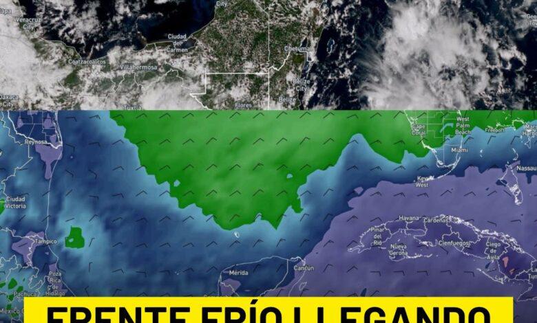 Como se había previsto, el frente frío #Ajauché, ubicado al norte de la península de Yucatán, está provocando un ambiente más fresco, acompañado de nublados y lluvias intermitentes en la región.