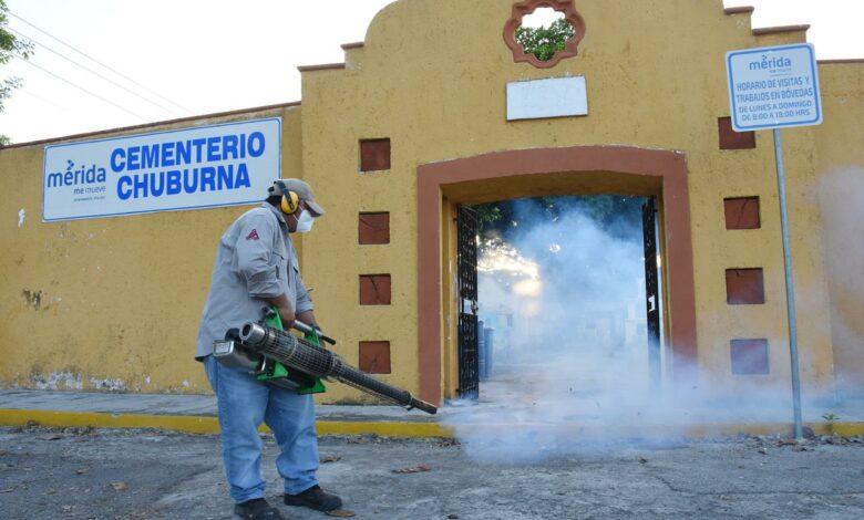 En la capital yucateca, los trabajos de fumigación se realizarán el 28 y 29 de octubre en los panteones Florido, Jardines de la Paz y Cementerio General, mientras que el de Xoclán se atenderá los días 30 y 31 del mismo mes.