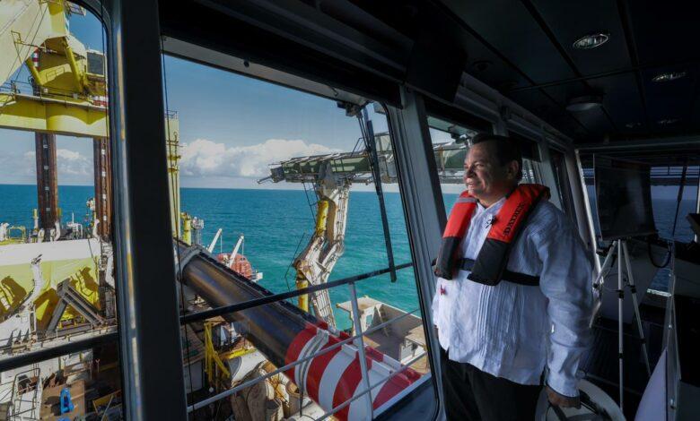 El Gobernador Joaquín Díaz Mena y representantes del CCE Yucatán realizaron una visita de supervisión al buque draga Fernando de Magallanes, una de las embarcaciones más modernas del mundo, que ejecuta la ampliación y modernización del Puerto de Altura de Progreso.