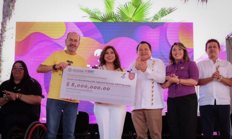 “A través del DIF Yucatán, hoy hacemos entrega de un donativo de ocho millones de pesos, que se suman a los 10 millones de pesos que ya había aportado el Gobierno del Estado. Lo hacemos convencidos de que este apoyo no es un gasto, sino una inversión de amor y esperanza para el futuro de las niñas y los niños yucatecos”, manifestó el Gobernador Díaz Mena.