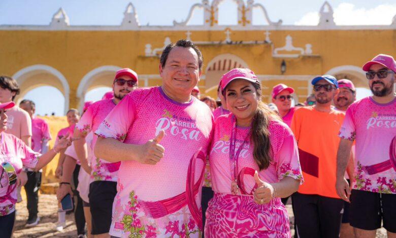 El Gobernador Joaquín Díaz Mena y la Presidenta Honoraria del Sistema para el Desarrollo Integral de la Familia (DIF) Yucatán, Mtra. Wendy Méndez Naal, encabezaron este domingo las actividades de la Carrera Rosa 2025 en Izamal, jornada con la que se reafirmó el compromiso del Gobierno del Estado con la prevención y detección oportuna del cáncer de mama.