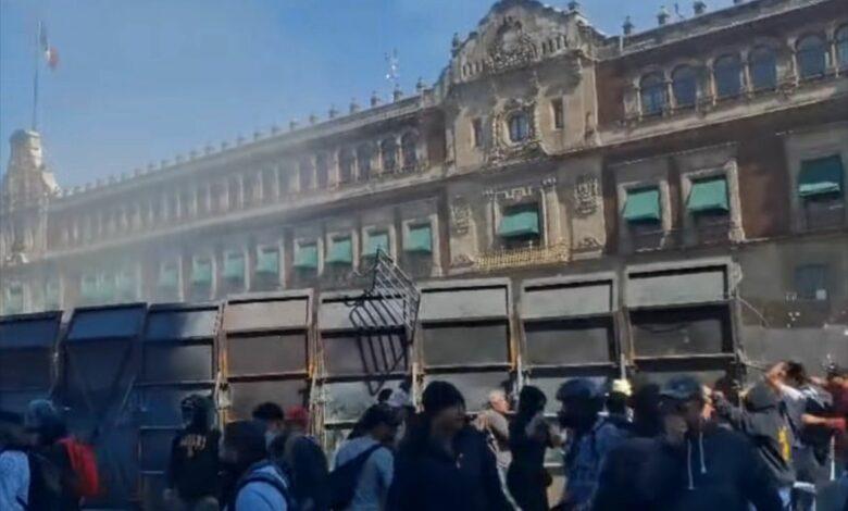 El punto de partida fue el Ángel de la Independencia y avanzaron por Paseo de la Reforma hasta el Zócalo capitalino, donde además de consignas pacíficas, un grupo encapuchado derribó vallas metálicas frente a Palacio Nacional.