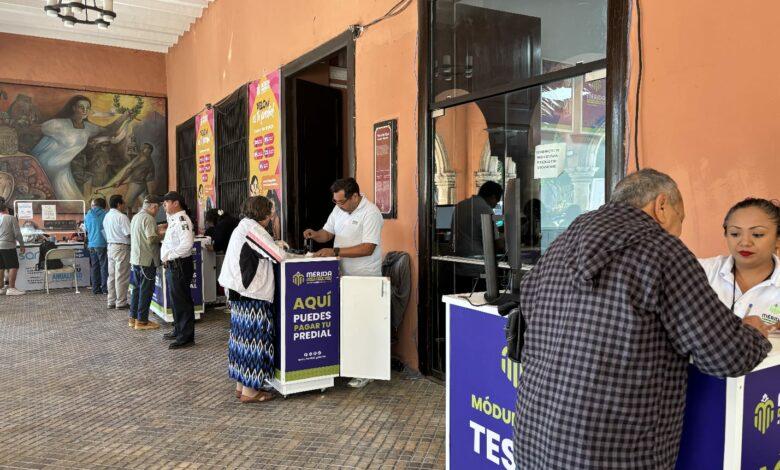Como es costumbre, meridanas y meridanos acudieron desde temprano el primer día hábil a pagar su predial en las cajas recaudadoras instaladas en los bajos del Palacio Municipal.