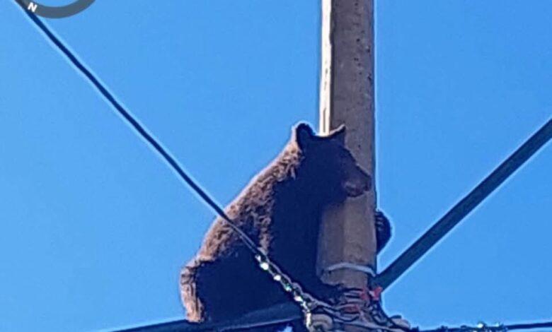 En Cananea, Sonora, un osezno de oso negro fue rescatado luego de trepar a un poste de la CFE tras deambular por la colonia Hangares.