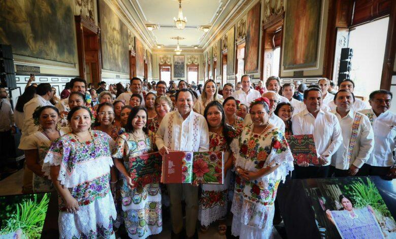 El gobernador Joaquín Díaz Mena encabezó la presentación del libro “El bordado maya de Yucatán: patrimonio vivo”, en el Palacio de Gobierno de Yucatán, obra que documenta la historia, vigencia y valor cultural de esta tradición textil como parte del proyecto del Renacimiento Maya.