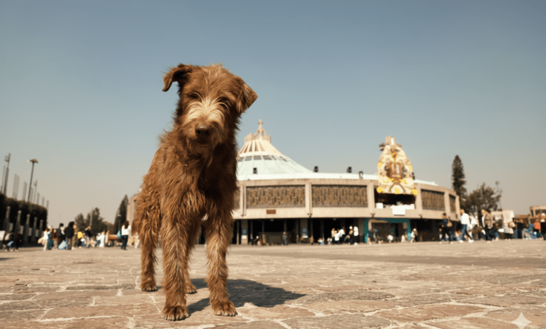 Los llamados perritos peregrinos son perros que acompañan a los fieles durante las peregrinaciones hacia la Basílica de Guadalupe en Ciudad de México con motivo de la celebración del 12 de diciembre, pero que con frecuencia quedan abandonados en las inmediaciones del santuario cuando sus dueños regresan a casa o se unen a los grupos en busca de comida y compañía.