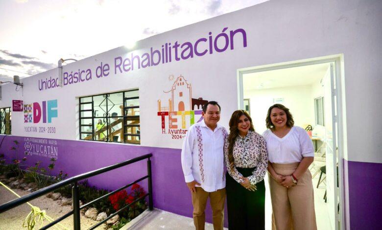 El gobernador Joaquín Díaz Mena y la presidenta honoraria del Sistema DIF Yucatán, Wendy Méndez Naal, encabezaron la entrega de la rehabilitación de la Unidad Básica de Rehabilitación (UBR) de Tetiz, con el objetivo de fortalecer la atención a personas con discapacidad y adultas mayores.