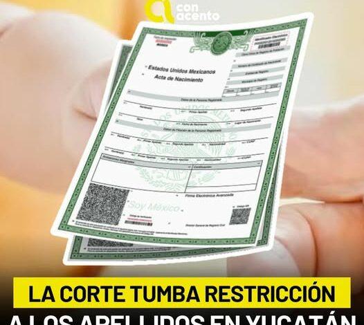 La Suprema Corte de Justicia de la Nación (SCJN) declaró inconstitucional una reforma a la Ley del Registro Civil de Yucatán que restringía el derecho de las familias a elegir libremente los apellidos de niñas y niños. La norma prohibía el uso de apellidos compuestos o combinaciones de más de dos apellidos simples, lo que la Corte consideró una injerencia arbitraria del Estado en el derecho a la identidad y a la vida familiar.