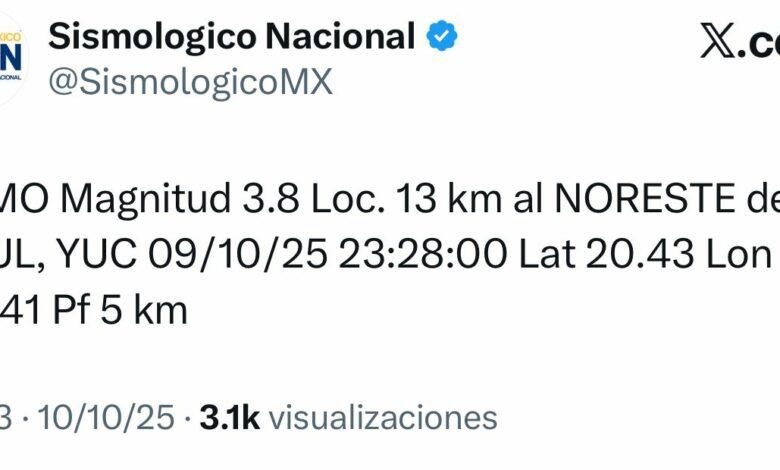 Más recientemente, el 9 de octubre de 2025 se reportó un temblor de 3.8 grados, con epicentro al noreste de Ticul y a 5 km de profundidad.