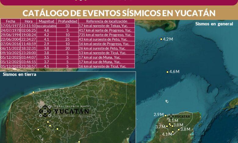 El viernes se detectaron tres movimientos (4.1, 3.5 y 3.7) cerca de Ticul y Muna, todos catalogados como leves y asociados a fallas locales, como la Falla de Ticul, común en el cono sur del estado.