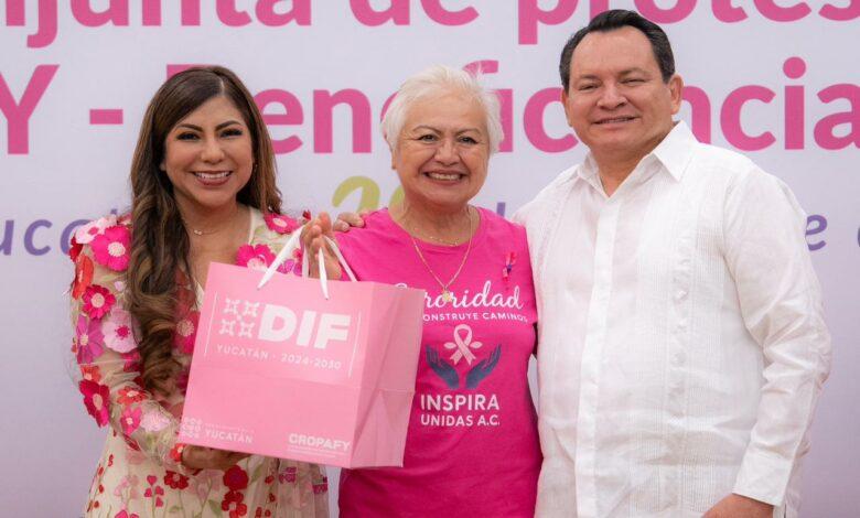 El Gobernador Joaquín Díaz Mena y la Presidenta del DIF Yucatán, Wendy Méndez Naal, encabezaron la entrega de 54 prótesis mamarias gratuitas, con acompañamiento médico y psicológico, como parte del Mes Rosa.