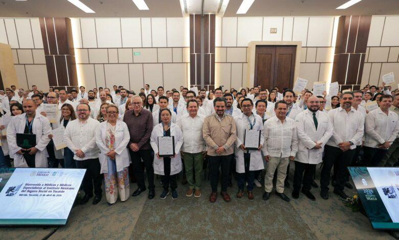 El Gobierno de Yucatán y el IMSS entregaron 278 plazas a médicas y médicos especialistas que se integrarán a hospitales y unidades de salud en Acanceh, Izamal, Maxcanú, Oxkutzcab y Mérida, con el objetivo de ampliar la atención médica en el estado.