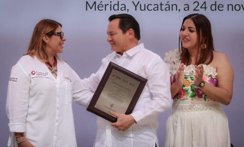 El Gobernador Joaquín Díaz Mena recibió la placa que acredita al Icatey como entidad certificadora y evaluadora del Conocer, lo que permitirá ofrecer programas de capacitación con validez nacional y fortalecer el talento yucateco.